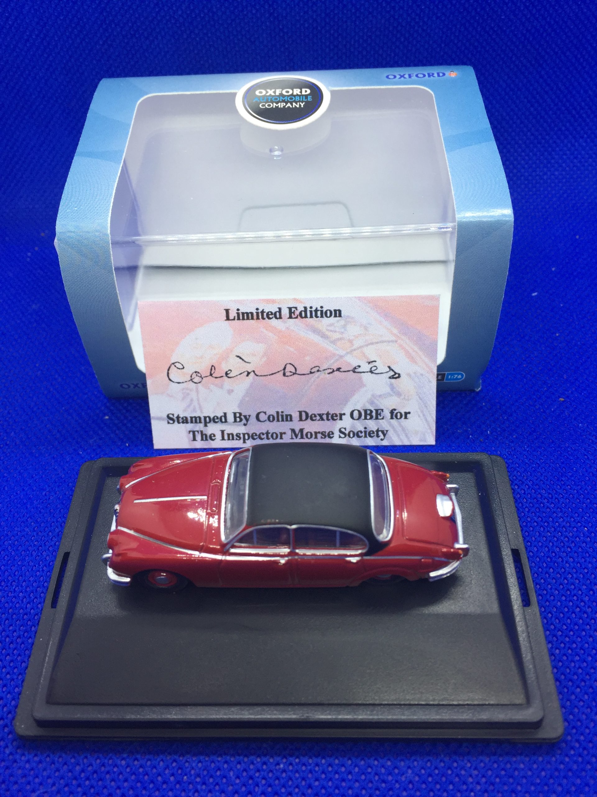 This is a superbly detailed 1:76 scale model of the famous Morse Jaguar complete with readable number plates. Each comes in a display box with insert stamped by Colin Dexter. Limited edition.